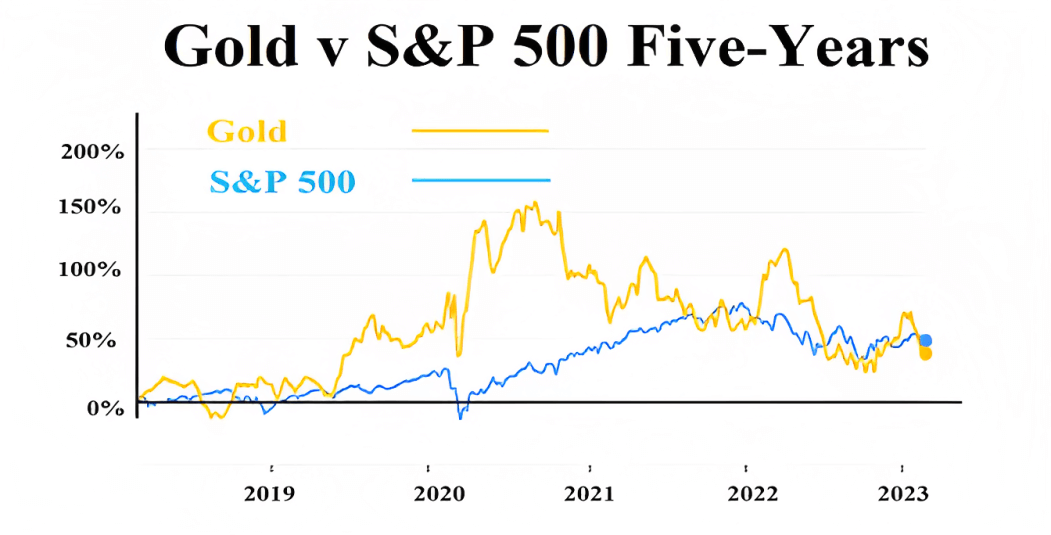 Desde 2018, el oro tambien se mantuvo por delante del mercado de valores en su conjunto, p.ej. del S&P 500: ver Figura 3.
