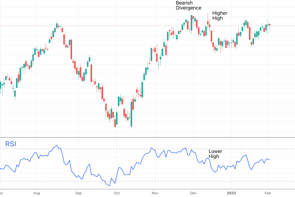 一方、弱気のダイバージェンスは、価格がより高い高値を作りながら、インジケーターがより低い高値を作るときに発生します。これは、トレンドが強気から弱気に反転する可能性があるというシグナルと見なされます。