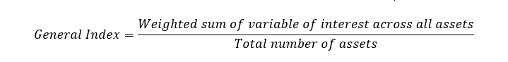 インデックスは、標準化され、理解しやすい方法で資産のコレクションのパフォーマンスを追跡する方法です。インデックスは通常、特定の金融市場の領域を表す試みとして資産のサブセットを使用します(例:S&Pダウ・ジョーンズ消費財セレクトセクターインデックス)が含まれますが、より広い市場を表すためにも使用されることがあります(例:スタンダード&プアーズ500インデックス)。一般的なインデックスの公式は以下の通りです:
